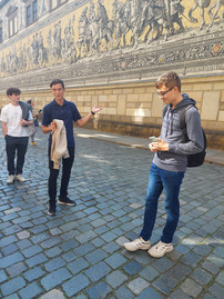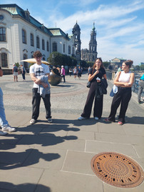 V odpoledních hodinách si žáci a žákyně vyzkoušeli vlastní orientační a průvodcovské schopnosti, a to při prohlídce historického jádra města. Prezentovali již ze školy připravené příspěvky k následujícím památkám: Zwinger, Semperoper, Hofkirche, Ressidenzenschloss, Fürstenzug, Terassenufer a Frauenkirche. Při hodnocení jednotlivých výkonů jsme konstatovali, že při průvodcovské službě je nutno více pracovat s hlasem, mluvit hlasitě, srozumitelně a zaujatě, organizovat si skupinu a znát důkladně prezentované informace.