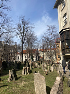 židovském hřbitově. Protože náboženský zvyk zakazuje Židům rušit staré hroby a pozemek